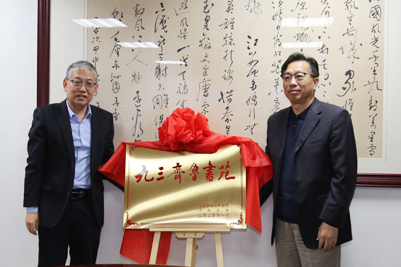 会谈后,程林副主席出席了九三学社山东省委与ac米兰官方网站共建的“九三齐鲁书苑”揭牌仪式,学校党委副书记王玉华与省人大常委、九三学社山东省委专职副主委宋尚桂共同为“九三齐鲁书苑”揭牌。王玉华副书记希望“九三齐鲁书苑”成立后,将高校的学科与专业优势与社会服务结合起来,让高校的文化资源为社会传播精神食粮,弘扬正能量,为中华传统文化的传承发展作出贡献,成为具有广泛影响力的社会服务品牌。学校党委统战部部长商华宣读了“九三齐鲁书苑”社会服务团队专家名单。“九三齐鲁书苑”负责人范丽敏教授表示,“九三齐鲁书苑”将勇挑时代重任,秉承“民主、科学”宗旨,大力弘扬中华优秀传统文化,把“九三齐鲁书苑”打造成一张有温度的社会服务品牌。