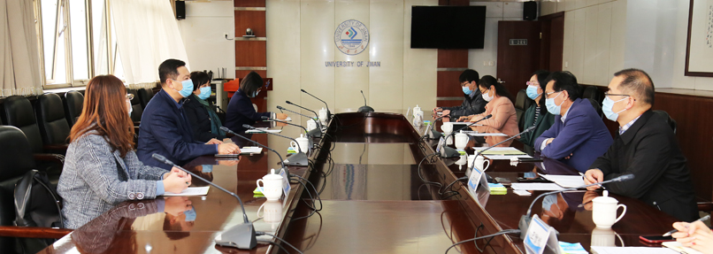 3月25日上午,济南市人民政府外事办公室副主任李兴春、市委外办秘书处处长宋文晶、涉外管理处二级主任科员刘朴、翻译中心副科长房倩倩一行4人前来ac米兰,就全面做好涉外疫情防控工作进行调研。学校党委副书记王玉华,国际合作与交流处、国际教育交流学院相关负责人参加座谈。