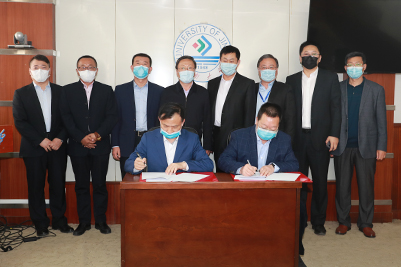 仪式上,ac米兰官方网站副校长刘宗明与山东领军科技集团总裁李香祖代表双方签署战略合作协议。