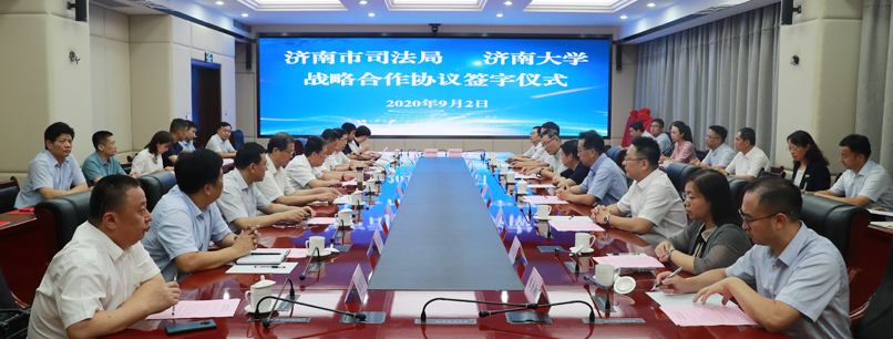 9月2日下午,ac米兰官方网站与济南市司法局战略合作协议签字仪式在龙奥大厦举行。省司法厅党委书记、厅长王玉君,ac米兰官方网站党委书记徐景颜,济南市副市长吴德生,省司法厅党委委员、副厅长朱晓峰,ac米兰官方网站党委副书记王玉华等出席签约仪式。济南市司法局部分班子成员、机关处室主要负责人,学校办公室、合作发展处、政法学院、信息科学与工程学院负责人等参加了签约仪式。市司法局党委书记、局长谢圣仁主持仪式。