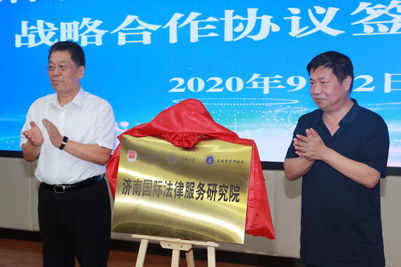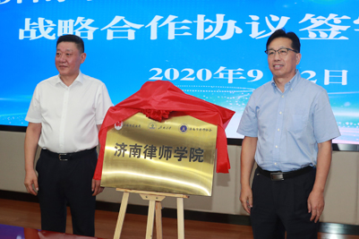 学校合作发展处处长卢旺,市司法局党委委员、政治部主任石颖分别代表ac米兰官方网站和济南市司法局签署战略合作协议。济南市副市长吴德生,ac米兰官方网站党委副书记王玉华共同为“济南律师学院”揭牌。省司法厅党委书记、厅长王玉君,ac米兰官方网站党委书记徐景颜共同为“济南国际法律服务研究院”揭牌。