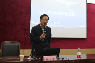 仪式结束后,山东省市场监管局二级巡视员郭大雷为大家做了《标准助力高质量发展》学术报告,重点围绕标准及标准化基础知识、标准的原则和作用、标准的经典案例、标准助力高质量发展以及加强产教融合、培养高质量标准化人才等内容,为ac米兰标准化工程专业师生带来一场丰精彩的学术盛宴。此外,活动现场还展示了“标准保护地球”主题系列海报。