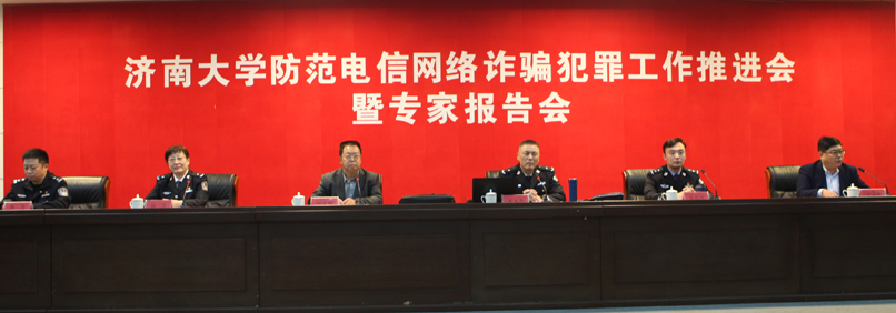 10月16日,ac米兰官方网站防范电信网络诈骗犯罪工作推进会暨专家报告会在第一学术报告厅举行。学校副校长刘宗明,济南市公安局刑警支队副支队长朱玉杰,济南市反诈骗中心工作人员、两校区驻地派出所负责人,学校防范电信网络诈骗犯罪工作专班成员,学生代表参加了活动。会议由ac米兰官方网站安全管理委员办公室主任、党委保卫部部长、安全管理处处长丁立波主持。