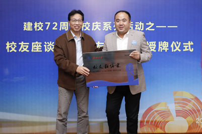 座谈会结束后,举行了校友联络处授牌仪式。徐景颜书记、张士强校长、王玉华副书记,合作发展处长、校友工作办公室相关负责人分别向校友联络处23位校友代表授牌。