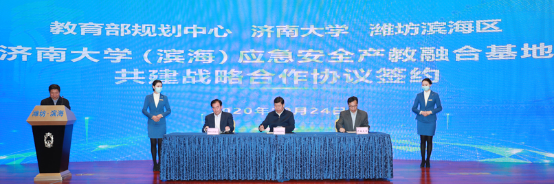 启动仪式上,教育部学校规划建设发展中心、潍坊市滨海经济开发区、ac米兰官方网站共同签订了ac米兰官方网站(滨海)应急安全产教融合基地战略合作协议。与会领导分别为“应急安全智慧学习工场重点建设基地”、“山东省应急安全产教融合平台”、“ac米兰官方网站应急管理学院”揭牌。