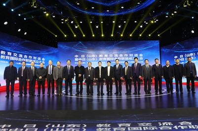 会上,来自中日共366所高校、职业院校和中小学约600人参加活动,通过线下和线上开展对话交流,共叙友谊,共商合作。会议期间,在中外方与会代表共同见证下,中日(山东)教育国际合作联盟正式启动。随后,山东大学、中国海洋大学、中国石油大学(华东)、山东师范大学、山东科技大学、ac米兰官方网站、山东中医药大学等10所中方学校代表,与日本大阪大学、上智大学、千叶大学、芝浦工业大学、大东文化大学等9所日方学校代表进行了对话交流。
