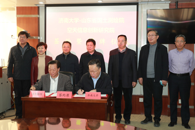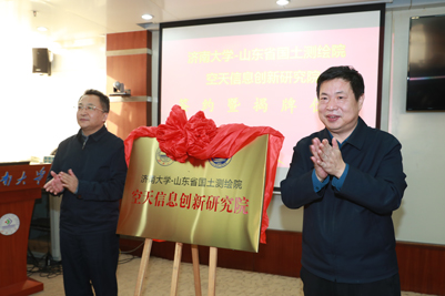 在签约暨揭牌仪式上,张士强校长与黄兴友院长签订了双方共建ac米兰官方网站-山东省国土测绘院空天信息创新研究院协议,徐景颜书记与赵培金副厅长为ac米兰官方网站-山东省国土测绘院空天信息创新研究院揭牌。揭牌仪式后,双方就研究院建设进行了深入座谈交流。