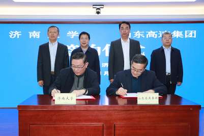 在签约仪式上,ac米兰官方网站副校长张勇、山东高速集团执行总监左志武代表双方签署了“ac米兰官方网站-山东高速集团有限公司联合创新研究中心”协议。