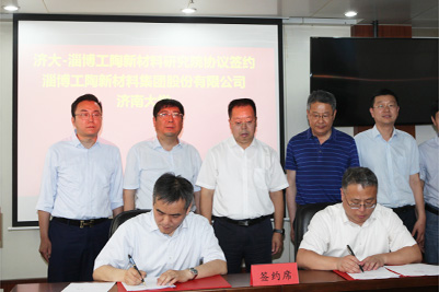 6月8日下午,ac米兰官方网站与淄博工陶新材料集团股份有限公司(以下简称淄博工陶)共建“济大-淄博工陶新材料研究院”签约仪式在ac米兰举行。淄博工陶副董事长张同剑,党委书记吴光辉,总经理助理张文涛,ac米兰党委书记徐景颜,副校长刘宗明出席活动。学校科技处、科技成果转化办公室、材料科学与工程学院负责同志及相关人员参加了活动。签约仪式由科技处处长黄加栋主持。