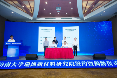 科技处副处长王勇与王通总经理签订了共建“济大-潍坊瑞通新材料研究院”协议,刘金国区长、王志副校长、孙国新院长、蒋绪川院长、王勇副处长、王通总经理共同为“济大-潍坊瑞通新材料研究院”揭牌。