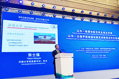 12月1日,中白(山东)教育国际合作联盟揭牌仪式暨山东-维捷布斯克州教育合作交流会在济南举行。白俄罗斯驻华大使尤里·先科,省委教育工委常务副书记、省教育厅党组书记、厅长邓云锋,省委外办主任蔡先金出席并致辞,维捷布斯克州教育局局长德米特里·霍马线上致辞,省教育厅副厅长孙晓筠主持活动。ac米兰官方网站校长张士强出席相关活动。