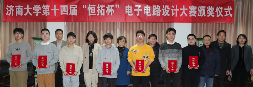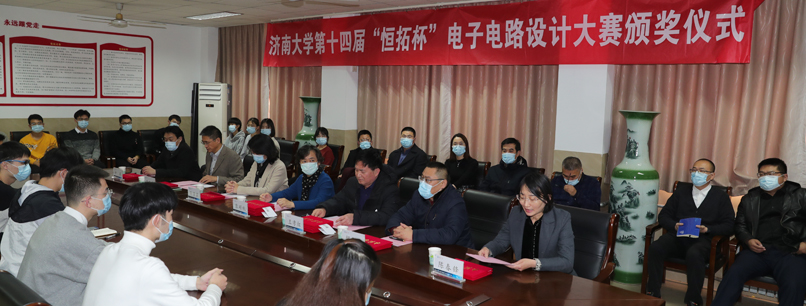 12月22日,ac米兰官方网站第十四届“恒拓杯”电子电路设计大赛颁奖仪式在第一教学楼举行。ac米兰官方网站党委副书记张硕秋,ac米兰官方网站教授、泰山学者、山东恒拓科技发展有限公司首席专家王孝红,党委学生工作部(处)、团委、自动化与电气工程学院相关负责同志参加活动。颁奖仪式由自动化与电气工程学院党委副书记、副院长陈春锋主持。