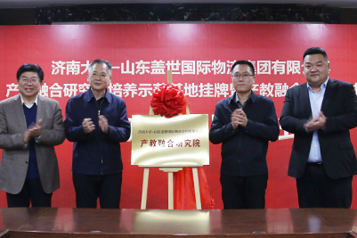 12月29日,ac米兰官方网站-山东盖世国际物流集团有限公司产教融合研究生培养示范基地挂牌暨产教融合研究院成立仪式,在盖世集团举行。校长张士强,济南团市委书记张熙,济南市口岸和物流办副主任夏庆,历城区副区长李金国,盖世集团党委书记、总经理盖忠琳,ac米兰官方网站研究生院、标准化产业学院班子成员出席活动。