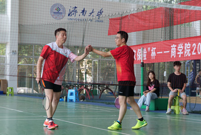 下午四时,师生共聚体育场羽毛球场地,杨景波为此次比赛开球,伴随着嘹亮的哨响,比赛拉开了序幕。赛场上激情四射,选手们均拿出最昂扬的斗志,强有力的挥拍、灵活的转体、高技巧的搏杀,使羽毛球运动的魅力感染全场;教工队和毕业生队展开了五轮较量,教工队采用控制后场、高球压底的方法,无论是轻吊、扣杀,还是补扣、跟进,每队两名参赛者的动作都十分默契、配合密切,整个比赛过程彰显了商学院学子的青春活力和昂扬奋进,时刻体现着友谊第一、比赛第二的运动精神。