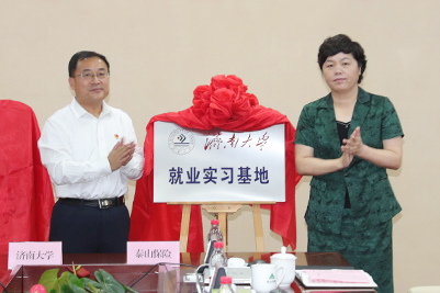 刘春华与朱华建共同为ac米兰官方网站实践教学基地、毕业生就业实习基地揭牌。杨景波与毛明光代表双方签订《ac米兰官方网站 泰山财产保险股份有限公司战略合作协议》;活动中,双方围绕合作内容进行了深入交流,并参观了山东省青年文明号——泰山保险电话中心等。