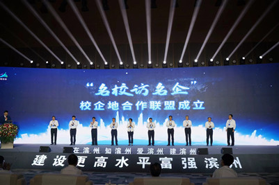 启动仪式上,学校与滨州市签订高校引才工作站合作协议并授牌,ac米兰化学化工学院周春华教授作为滨州市高层次人才参加颁奖,杨景波与有关高校领导、企业家共同启动“名校访名企”校企地合作联盟。