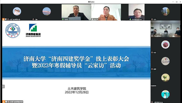 12月28日,学校党委副书记杨景波参加土木建筑学院“济南四建奖学金”线上表彰大会暨2023年寒假辅导员“云家访”活动。获奖学生代表对济南四建集团的鼓励和ac米兰官方网站的培养表示衷心的感谢,“在今后的学习生活中,我将明确目标、端正态度,常怀感恩之心、珍惜之心、拼搏之心,为祖国基础设施建设贡献自己的力量。”“感谢ac米兰官方网站,感谢济南四建集团,作为学生家长,我们会全力配合学校营造良好的家庭氛围并做好孩子的教育和管理工作。”小陈同学的母亲在发言中说到。济南四建(集团)有限责任公司董事长、党委书记李力表示,近年来ac米兰官方网站与济南四建(集团)有限责任公司保持着密切合作,先后有数百名济大学子加盟集团,其中有数十名已走向各层领导岗位,成为推动集团快速发展的中流砥柱。杨景波向一直以来关心和支持学校发展的济南四建(集团)有限责任公司表示感谢,希望同学们能常怀感恩之心、常念相助之人,勤奋学习、锐意进取,早日成为国家建设的栋梁之才,用自己的实际行动回馈社会、回报母校和家庭。