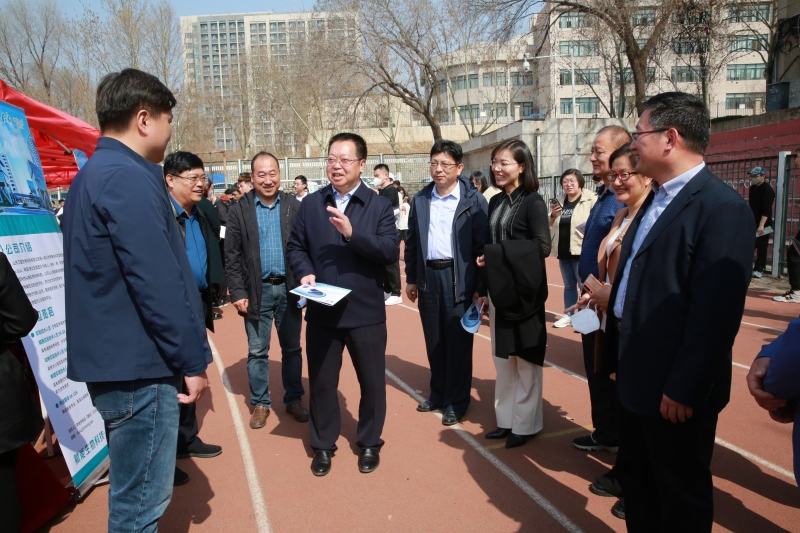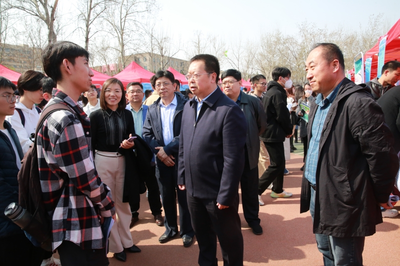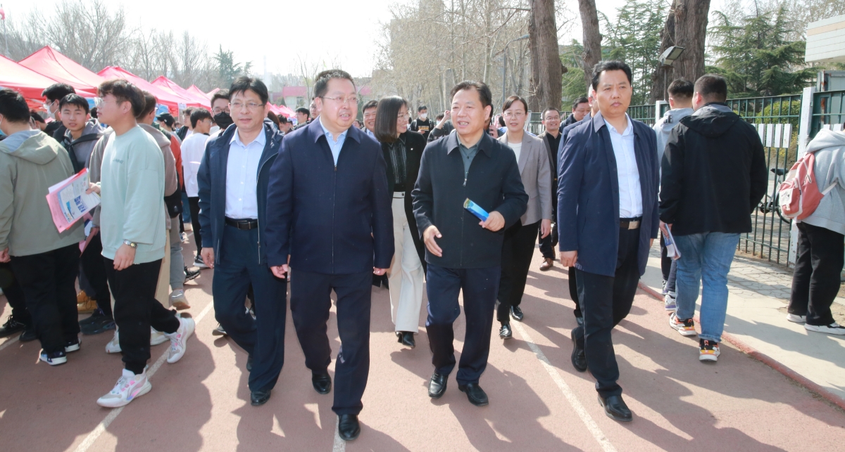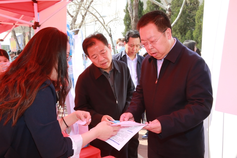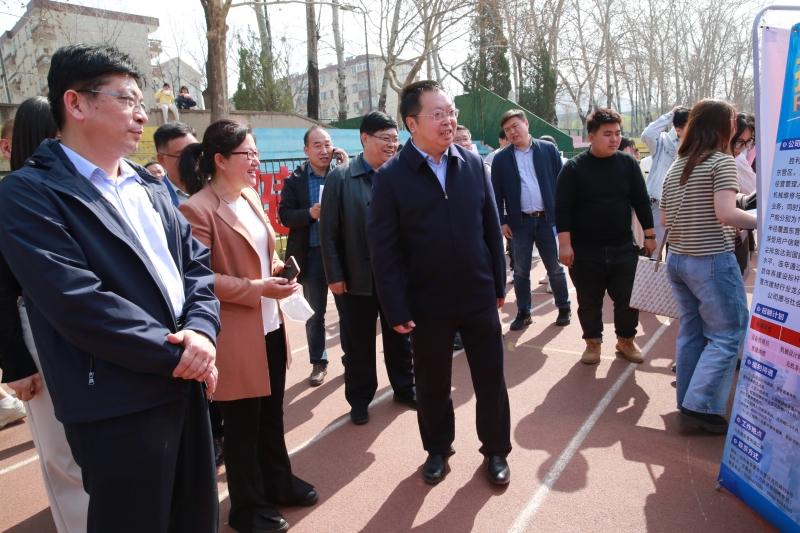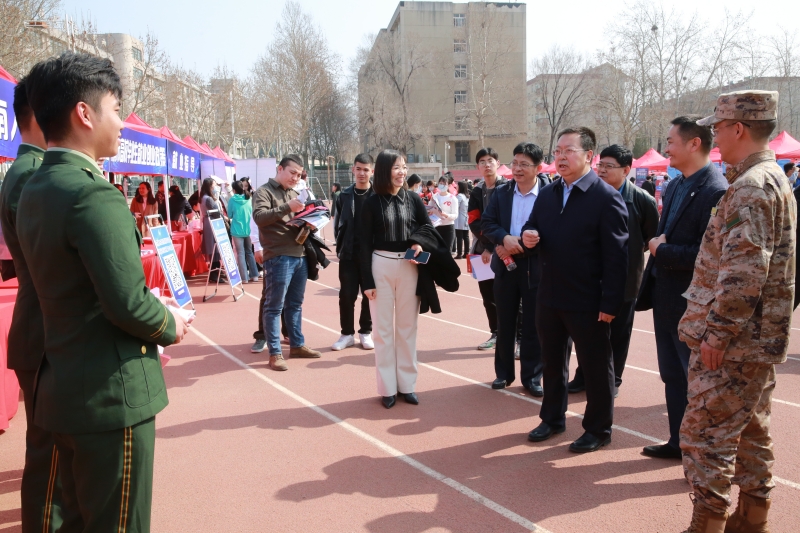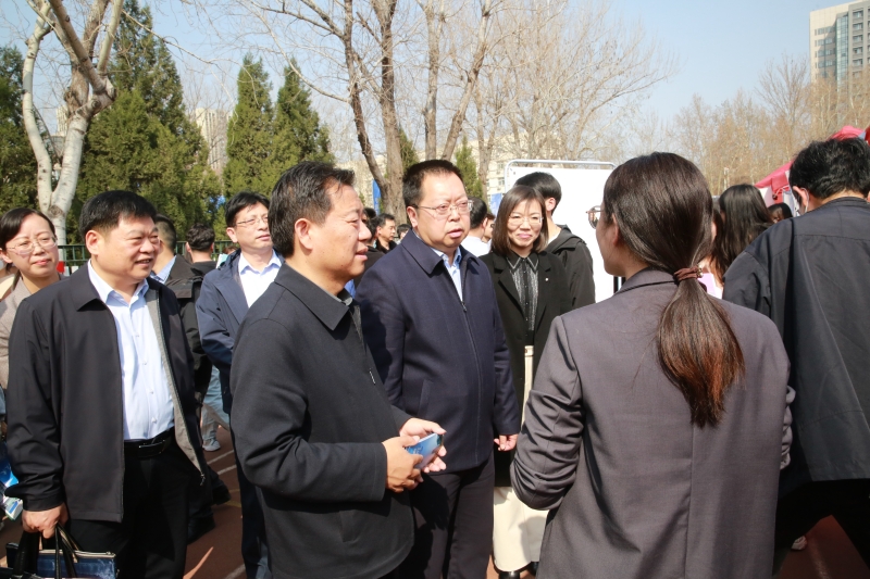 济南市委组织部副部长、市人力资源和社会保障局局长宁延学,市人力资源和社会保障局党组成员、市公共就业服务中心主任王振群,市中区副区长张源,ac米兰官方网站校长刘宗明、党委副书记杨景波等来到招聘会现场,在展位前与用人单位、求职学生进行交流。