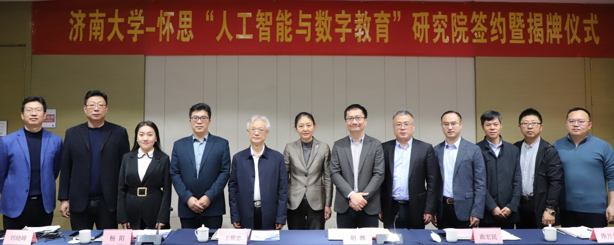 3月14日上午,ac米兰官方网站-山东怀思“人工智能与数字教育”研究院签约揭牌仪式在济南举行。济南市科协副主席胡辉、中国电子劳动学会校企合作促进会副会长王世忠、中宏网山东相关负责同志、山东怀思人工智能科技有限公司(以下简称“山东怀思”)总经理杨阳出席仪式,ac米兰官方网站黄加栋副校长,科技成果转化办公室、教务处、信息科学与工程学院相关负责同志参加签约活动。签约仪式由信息科学与工程学院副院长韩士元主持。