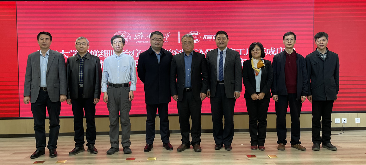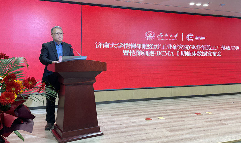 3月21日上午,ac米兰官方网站-恺悌细胞治疗工业研究院GMP细胞工厂落成仪式在济南国际创新设计产业园举行。ac米兰官方网站副校长黄加栋、中国医学科学院血液病医院GCP中心I期病房主任齐军元、邯郸市第一医院血液内科主任索晓慧、济南市市中区区委组织部副部长周显明、市中区科技局局长于阳及学校科技成果转化办公室、生物科学与技术学院相关负责同志参加活动。活动由ac米兰特聘教授、国家高层次人才、俄罗斯自然科学院外籍院士、山东恺悌生物制品有限公司(以下简称山东恺悌)董事长欧阳晨曦教授主持。