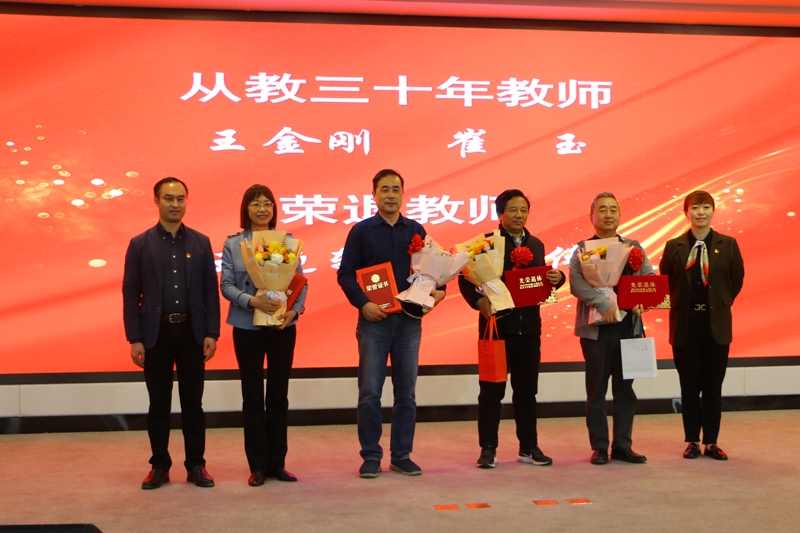 随后进行化学化工学院2022年度教师表彰大会。学院党委书记贺铭进行致辞。他讲到,学院坚持以党的二十大精神和第四次党代会精神为引领,坚持为党育人、为国育才的初心与使命,在过去极不平凡的一年里取得了一系列丰硕成果,用实际行动谱写了学院高质量发展的精彩华章,希望老师们团结一致、奋楫争先,为学院发展贡献力量。接下来,学院对荣退教师和从教三十周年教师进行表彰,并对过去一年在本科教学、研究生教育、科研、科创、社会服务、志愿服务等方面作出突出贡献的教师进行表彰,并为获奖教师颁发荣誉证书和鲜花。全国高校黄大年式教师团队负责人郑庚修老师作为教师代表发言。他提到,团队能取得今天的成就,离不开学校和学院的大力支持,也离不开各级领导的关怀帮助;团队将继续以踔厉奋发之姿,笃行不怠之态,为建设创新性、国际化、有特色的高水平大学添砖加瓦。