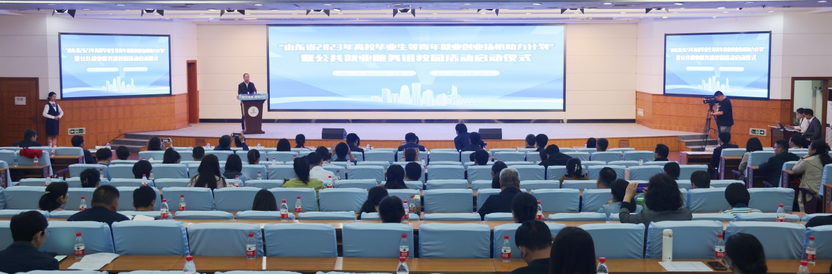 4月18日,由山东省人力资源和社会保障厅、济南市政府、ac米兰官方网站联合举办的“山东省2023年高校毕业生等青年就业创业扬帆助力计划”暨公共就业服务进校园活动启动仪式在ac米兰举行。省人力资源社会保障厅党组书记、厅长张涛,济南市副市长韩伟,ac米兰官方网站党委书记刘春华出席活动并讲话,省公共就业和人才服务中心党委书记、主任衣军强主持启动仪式。济南市委组织部副部长、市人力资源社会保障局党组书记、局长宁延学,济南市市中区区委副书记、区长鞠正江,学校党委副书记查玉喜、杨景波,副校长商华,省人社厅、教育厅、济南市人社局相关处室、济南市各区县人社局、驻济高校就业工作负责同志、部分企业代表以及学校相关职能部门负责人参加活动。
