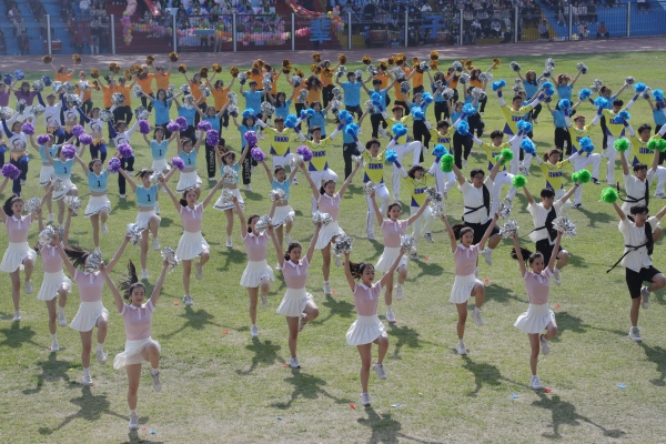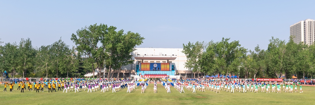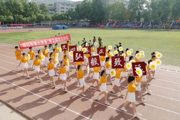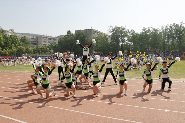 运动员、裁判员退场后,精彩的团体操表演开始。整齐划一的动作,热情动感的表演激情,学生们用青春的步伐跳出朝气和活力。