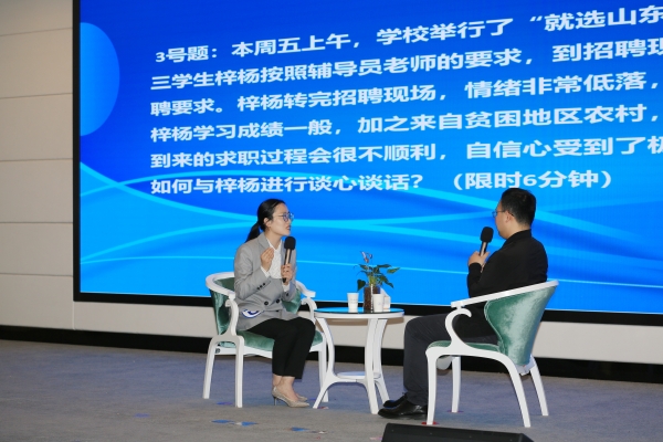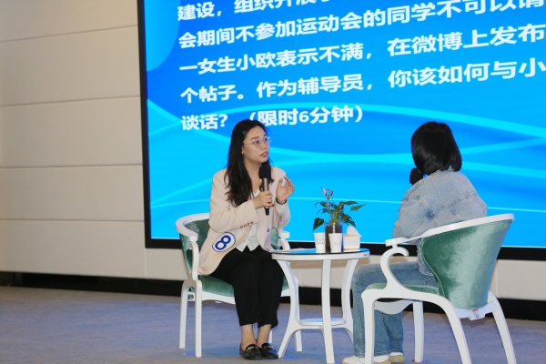 决赛分为谈心谈话和理论宣讲两个环节,采用随机抽题、现场演绎、当场出分的方式进行。谈心谈话环节,参赛选手在助演的配合下,用扎实的理论基础、专业的沟通技能、灵活的应变能力、真挚的情感表达与学生和家长耐心倾听、细心疏导、真心服务,以情载理,理情交融,展现了辅导员的担当和情怀。理论宣讲环节,参赛选手以“点亮青春理想”“激昂奋斗旋律”“淬炼斗争精神”“澎湃创新动力”为题,围绕学习贯彻落实习近平新时代中国特色社会主义思想,立足时代发展新要求和学生成长新特点,讲述身边的故事,诠释初心使命,展现了辅导员的专业能力和水平。
