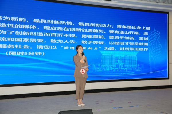 教育部高校思想政治工作队伍培训研修中心(山东大学)办公室副主任高弟对大赛进行了点评。她充分肯定了学校的精心筹备和周密组织、高度赞扬了选手们的出色状态和完美表现。她指出辅导员素质能力大赛是一种手段,比赛的真正目的是提升辅导员的育人能力,最终要落脚到人才培养。她结合国赛和省赛的要求、标准,对基础知识测试、理论宣讲、谈心谈话、案例分析等环节逐一进行剖析。