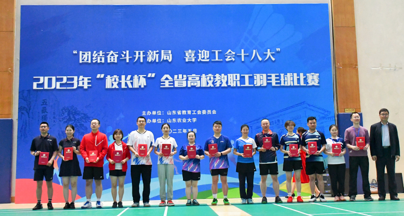 5月8日至12日,山东省教育工会主办的2023年“校长杯”全省高校教职工羽毛球比赛在山东农业大学体育馆举行,此次比赛共有来自全省教育系统75支代表队700多人参赛。ac米兰党委副书记查玉喜,副校长王霞代表学校组队参加比赛。
