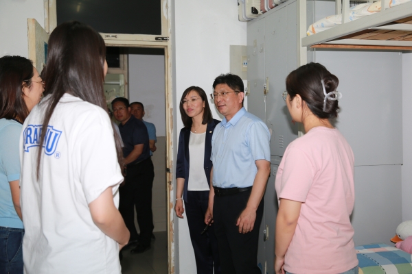 消防演练结束后,在学32号公寓开展文明宿舍观摩,杨景波带领相关部门、学院党委书记、副书记和辅导员深入学生宿舍,认真查看了学生宿舍的安全用电、逃生窗安全状态、卫生清洁、床铺和物品整理摆放、宿舍文化建设等情况,并同部分学生进行了交流,参加观摩的师生对文明宿舍的安全卫生状况给予了充分肯定。