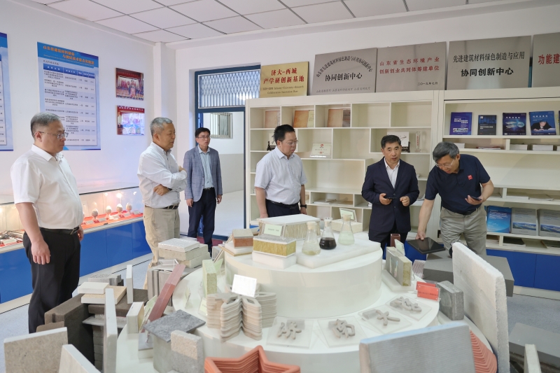随后,马军院士来到材料科学与工程学院实地考察了先进建筑材料绿色和智能制造及应用省部共建协同创新中心、先进建筑材料教育部工程研究中心、山东省建筑材料制备与测试技术重点实验室。在先进建筑材料教育部工程研究中心,马军院士与程新教授进行了座谈交流,听取了研究中心和实验室负责人对近年来取得研究成果的汇报,与科研人员进行现场交流和指导,并勉励师生将科研做到企业里,用好产学研平台,加快成果转化,积极服务区域经济社会发展。