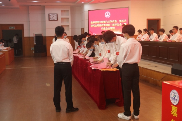 第二次全体会议上,在总监票人和监票人的监督下,大会以无记名投票方式选举产生了ac米兰官方网站第六次学生代表大会、第五次研究生代表大会常任代表和新一届学生会、研究生会主席团成员。
