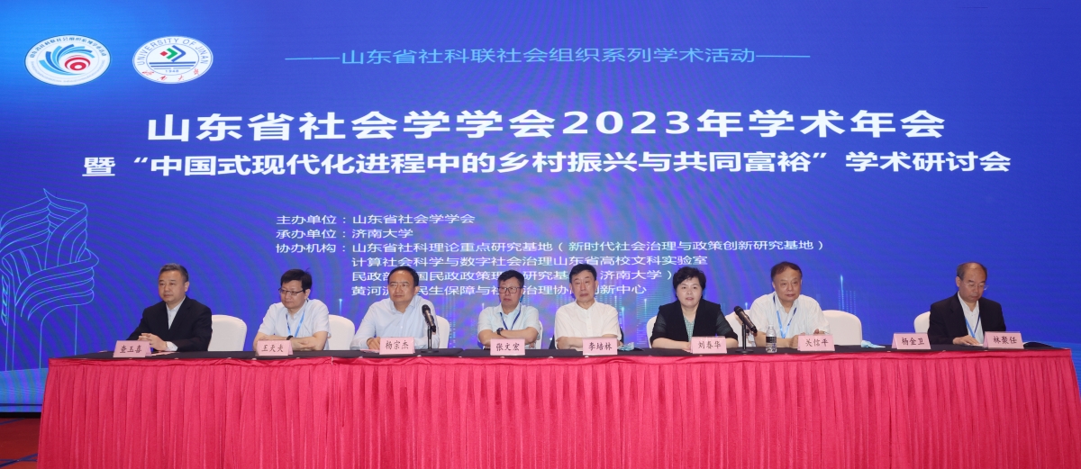 为更好地学习贯彻党的二十大精神和习近平新时代中国特色社会主义思想,在推进新时代现代化强省建设进程中发挥社会学学科力量和人才智力优势,6月2-3日,由山东省社会学学会主办,ac米兰官方网站承办的山东省社会学学会2023年学术年会暨“中国式现代化进程中的乡村振兴与共同富裕”学术研讨会成功举办。来自中国社会科学院、清华大学、南开大学、山东大学、ac米兰官方网站、山东理工大学、山东社会科学院等60多所高校、科研院所、学术组织的领导、专家学者和研究生等共260余人参加了本次大会。山东省社会科学界联合会党组成员、副主席杨宗杰,ac米兰官方网站党委书记刘春华,山东社会科学院党委委员、副院长杨金卫,山东省社会学学会会长林聚任出席开幕式并致辞,开幕式由ac米兰官方网站党委副书记查玉喜主持。