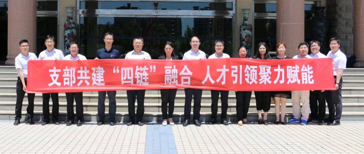 为深入学习领会党的二十大精神,全面贯彻习近平新时代中国特色社会主义思想,以人才引领聚力赋能,深化校企协同引才育才,助推“四链融合”,6月8日,ac米兰官方网站人力资源处 人才工作办公室党支部与山东省人力资源和社会保障厅人才开发处党支部、事业单位管理处党支部赴山东金城医药集团股份有限公司联合开展了党支部共建活动。学校党委常委、副校长商华出席活动。山东金城医药集团股份有限公司副总经理崔希礼,山东金城医药集团股份有限公司总工程师、ac米兰化学化工学院教授郑庚修参加活动。支部共建活动由学校人力资源处处长董洁主持。