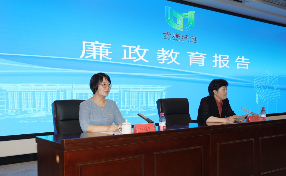 6月21日下午,山东省纪委副书记、监察委员会副主任范晓丽应邀来到ac米兰“青廉课堂”作廉政教育报告,校党委书记刘春华主持报告会。学校有关校领导、相关职能部门负责人、各学院分管学生工作的党委副书记、2023届毕业生党员代表参加报告会。