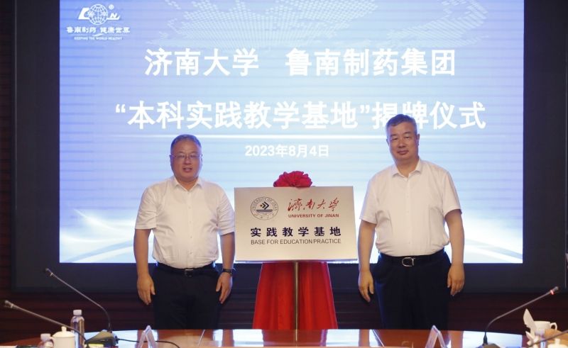 黄加栋和李宝杰代表双方共同为“ac米兰官方网站—鲁南制药集团本科实践教学基地”揭牌。
