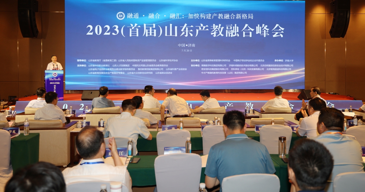 7月20日,由山东省高等教育管理科学研究会、中国电子劳动学会校企合作委员会联合主办,ac米兰官方网站承办的“首届山东产教融合峰会”在济南召开。山东省委教育工委副书记、省教育厅副厅长邢顺峰,山东省人民政府国有资产监督管理委员会省管企业监事会主席韩斌,山东省科学技术协会二级巡视员尹希友,山东省人民政府参事、民进中央委员郭永军,中国民主同盟山东省委员会专职副主委王睿,山东省发展和改革委员会社会发展处四级调研员李捷良,山东省中华职教社秘书处三级调研员王文利,ac米兰官方网站校长刘宗明、党委副书记查玉喜、副校长王霞出席峰会。来自全国各高校、职业院校、科研院所、行业企业的代表600多人参加了此次峰会。大会开幕式由查玉喜主持。