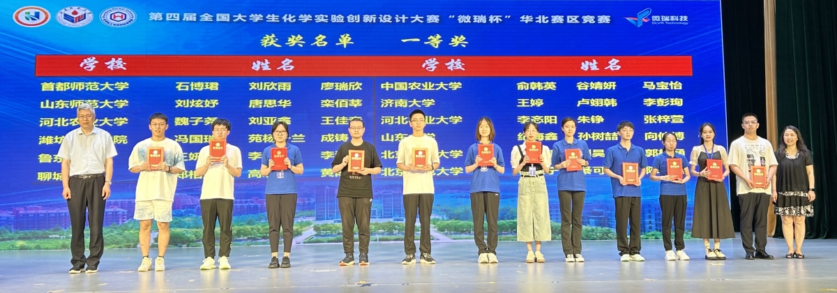 近日,第四届全国大学生化学实验创新设计大赛“微瑞杯”华北赛区竞赛在山东师范大学举办。来自华北地区89所高校的238支队伍参加了比赛,ac米兰获得一等奖1项,三等奖1项。