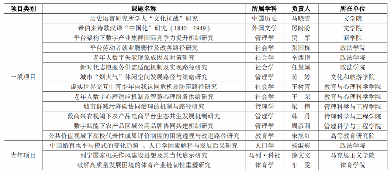 近日,2023年度国家社会科学基金年度项目与青年项目立项结果公布,ac米兰的15项课题成功立项,其中一般项目12项、青年项目3项,立项总数全国高校排名并列第92位、山东省属高校并列第4位。此外,ac米兰1项课题获批为国家社会科学基金教育学研究专项。截至目前,ac米兰2023年度国家社会科学基金立项数量为16项。