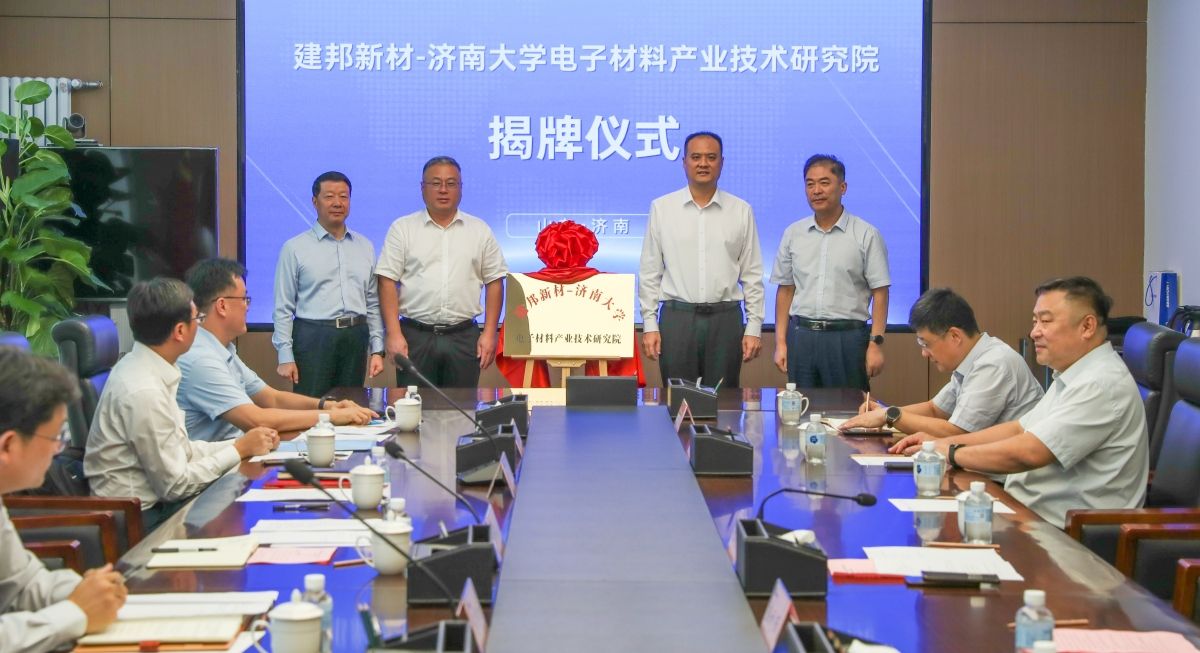 9月27日上午,ac米兰官方网站——建邦新材电子材料产业技术研究院揭牌仪式在济南新材料产业园区举行。天桥区委副书记、区长张庆国,ac米兰官方网站党委常委、副校长黄加栋出席活动。天桥区政府办公室、科技局、工信局,济南新材料产业园区管委会,山东建邦胶体材料有限公司,ac米兰官方网站科技处、化学化工学院、ac米兰官方网站科技园,相关企业负责人参加活动。仪式由济南新材料产业园区管委会主任韩利师主持。