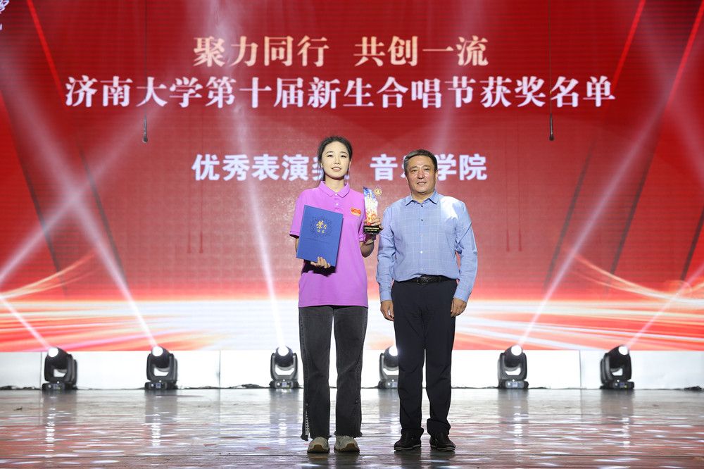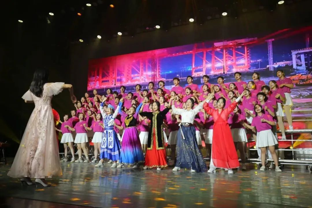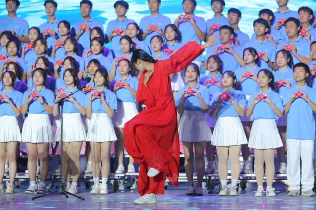 10月15日,在汇报展演的互动环节,全体观众挥舞国旗,共同唱响《歌唱祖国》,汇报展演在一句句铿锵有力、激情澎湃的歌声中拉开帷幕。由杨景波带领学团队伍组成的合唱团唱响校歌《你我同行》,旋律动听、歌声悠扬,用嘹亮歌声抒发对济大的深情厚爱、真挚祝福,展现出新时代教育工作者“为党育人,为国育才”的使命初心和“躬耘教坛,强国有我”的志向抱负。展演期间,《不忘初心》《领航》等歌曲宛转悠扬,带领听众穿越百年时光,重温中国共产党人追寻真理、奋勇前进的光辉历程;《我的祖国》《征途》《有我》《相亲相爱》等歌曲饱含深情,诠释青年的拳拳爱国心;《共筑中国梦》《强国一代有我在》等歌曲激情澎湃、气势磅礴,抒发学子的殷殷报国志;《奔跑的青春》《少年中国说》《星辰大海》《我相信》等歌曲青春洋溢、动感十足,展现新时代青年的蓬勃朝气与昂扬锐气。