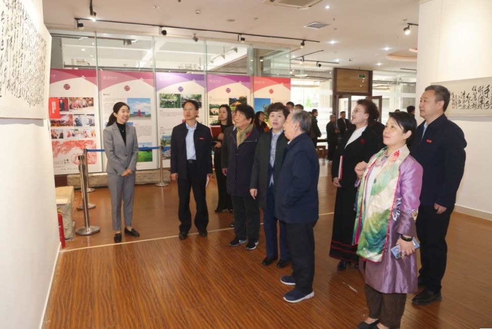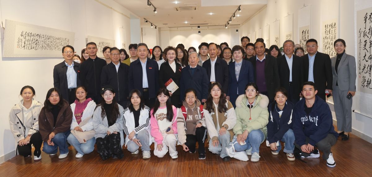 仪式结束后,与会嘉宾和师生代表前往学校舜道艺术馆参观贺惠邦先生手书毛泽东诗词楹联题词作品展。大家在一幅幅书法作品前驻足观赏或拍照留念,感悟毛体书法的恢弘气势和毛泽东诗词楹联题词深厚的思想内涵和特有的文学魅力。馆内陈列的《没有共产党就没有新中国》百年馆藏报纸,展示了中国共产党波澜壮阔百年历史的红色印记,一张张珍贵史料吸引了大家的目光、引发了大家的热议。