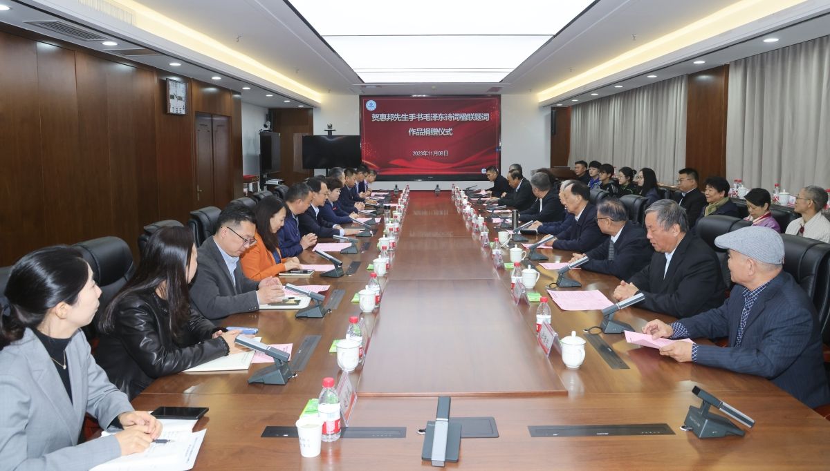 为深入学习贯彻习近平文化思想,贯彻落实党的二十大关于文化建设的战略部署,11月8日,学校举办贺惠邦先生手书毛泽东诗词楹联题词作品捐赠仪式暨作品展、《没有共产党就没有新中国》百年馆藏报纸资料捐赠仪式。
