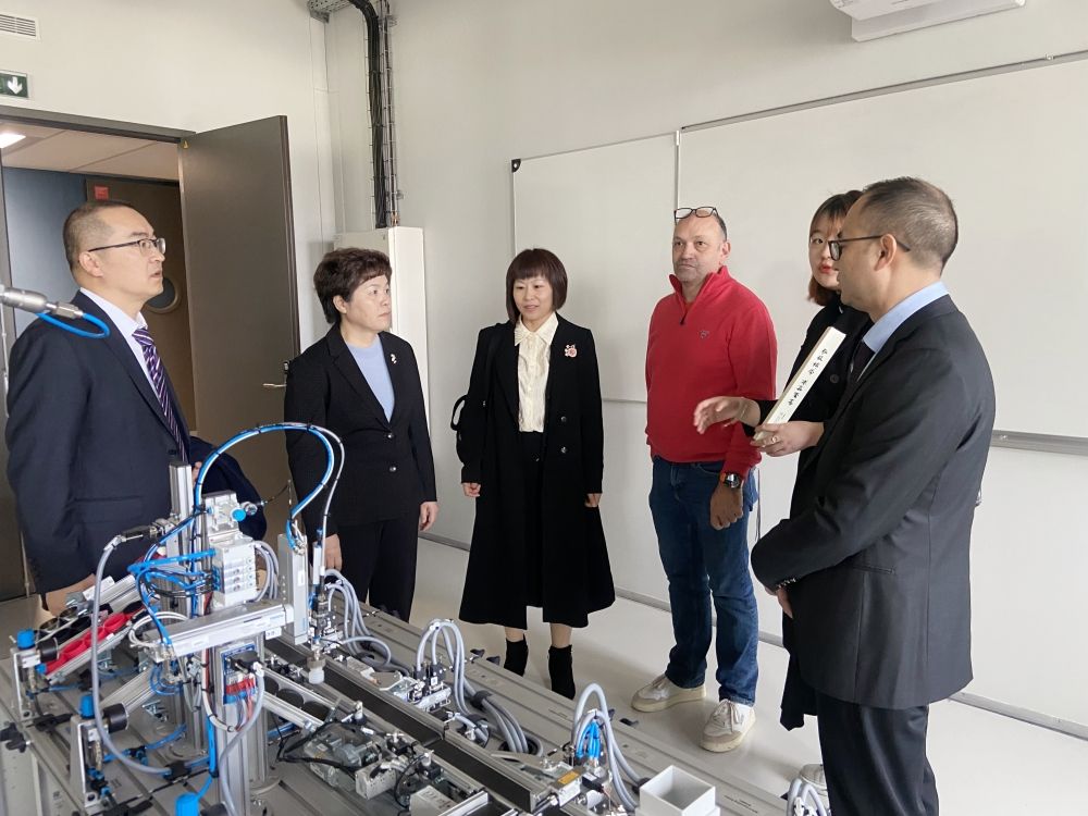 在图卢兹三大,代表团与副校长法布里斯(Fabrice Gamboa)及工程学院相关负责人会面,会上双方介绍了学校人才培养、科学研究及国际合作等基本情况,同时法布里斯副校长介绍了法国高校的管理体系、学制、科研教学人才及培养模式等。刘春华书记表示,图卢兹是空客公司总部所在地,作为一所以工科见长的综合类大学,图卢兹三大坐落于此,在航空工业、机械工程、材料科学及信息技术方面有得天独厚的优势,这与ac米兰官方网站在办学特点、学科专业等方面有诸多共同点,希望以此次访问为契机,推动双方在教学、科研等领域的交流与合作。会后,代表团参观了由政府、学校及多家企业共同创立并独立运营的机械工程实验楼(la Maison de la Formation Jacqueline Auriol,MFJA),详细了解了该实验楼的运营模式以及在教育、科研和社会服务方面的作用。