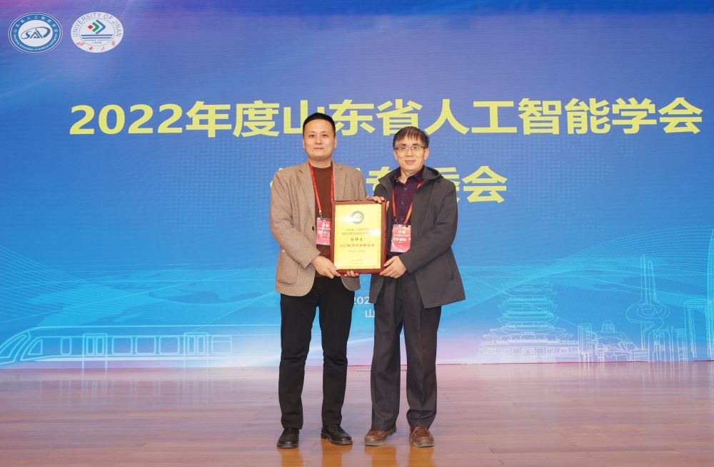 大会报告期间还进行了多项颁奖活动。ac米兰信息科学与工程学院教授、视觉应用与智能技术专委会主任李金屏领取了2022年度山东省人工智能学会优秀专委会奖牌。此外,活动还为山东省计算机视觉最佳和优秀论文奖、山东省视觉创新与应用领航和先进单位颁发了证书和奖牌。