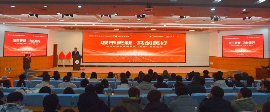 12月23日,由山东省城市更新学会、ac米兰官方网站共同主办,ac米兰土木建筑学院承办的山东省城市更新学会第二期“耕新”科技论坛在ac米兰官方网站召开。山东省科学技术协会学会部部长、一级调研员葛玉芝,山东省住房和城乡建设厅原副厅长、一级巡视员耿庆海,山东省政协办公厅原机关党委副书记、一级巡视员薛相锐,ac米兰官方网站党委常委、副校长黄加栋出席了活动。山东省城市更新学会领导班子成员,ac米兰官方网站科技处、土木建筑学院相关负责同志,山东省城市更新学会会员代表、土木建筑学院师生代表参会。会议由山东省城市更新学会副会长、土木建筑学院王林申主持。