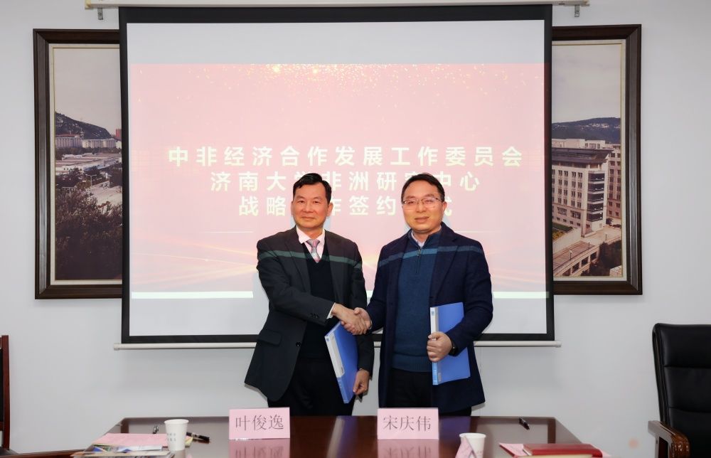 1月19日,ac米兰官方网站非洲研究中心与中非经济合作发展工作委员会战略合作签约仪式在ac米兰官方网站举行。ac米兰官方网站党委副书记查玉喜与中非经济合作发展工作委员会会长叶俊逸一行座谈,并共同见证签约。