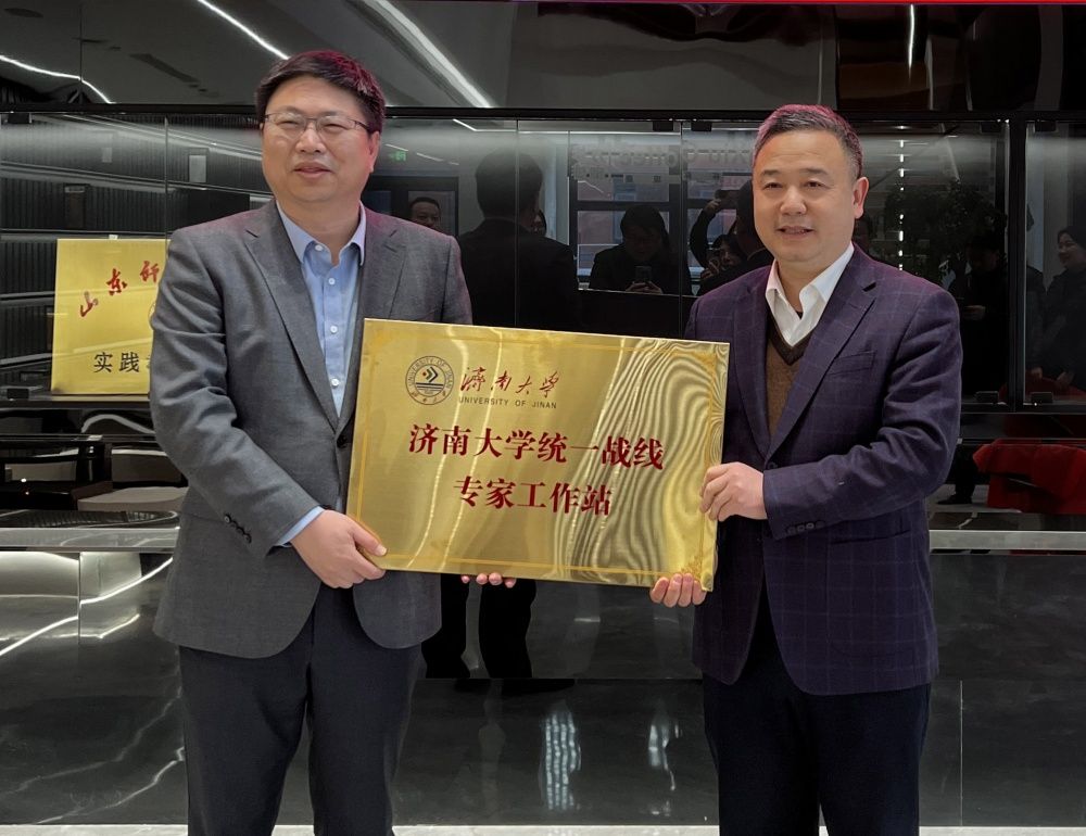为推动学校统战工作高质量发展,3月6日,ac米兰官方网站首个统一战线专家工作站在舜博创意产业园举行授牌仪式。学校党委副书记查玉喜,党委常委、统战部部长徐庆国,教育与心理科学学院党委书记季竹君,学校校友、山东出版资产管理有限公司党委书记、总经理田进,学校部分党外教师代表和校友代表出席授牌仪式。