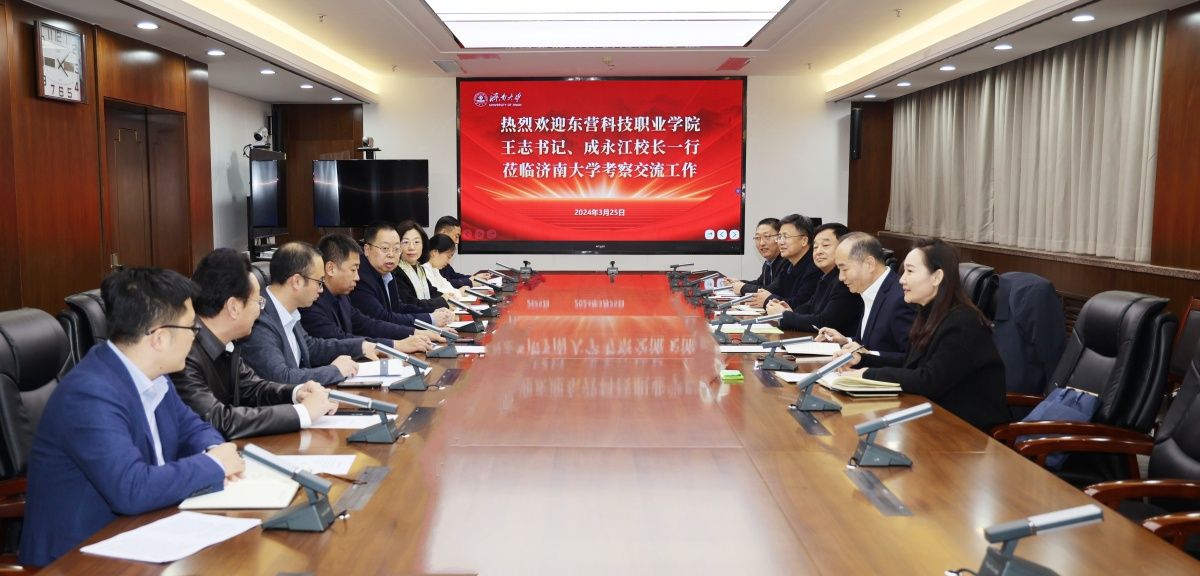 3月25日,东营科技职业学院党委书记王志、校长成永江一行来校交流访问。校长刘宗明,党委常委、副校长王霞,学校办公室、组织部、人力资源处、教务处、继续教育学院等部门负责人参加座谈会。